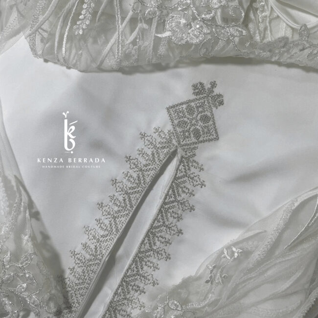 Le savoir-faire de la Maison s’exprime à travers l’art des broderies marocaines traditionnelles, sublimé par l’exigence de la haute couture contemporaine.