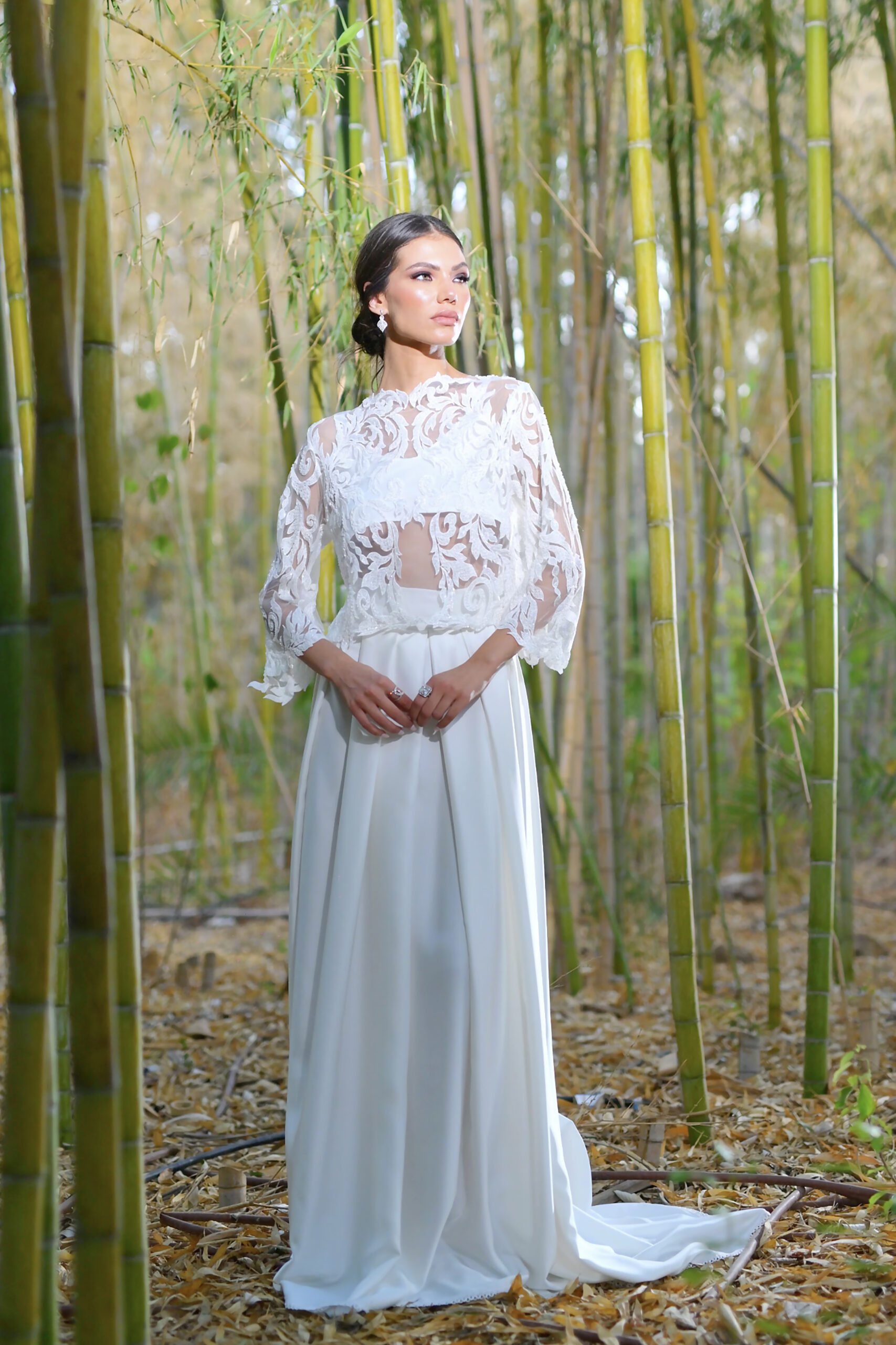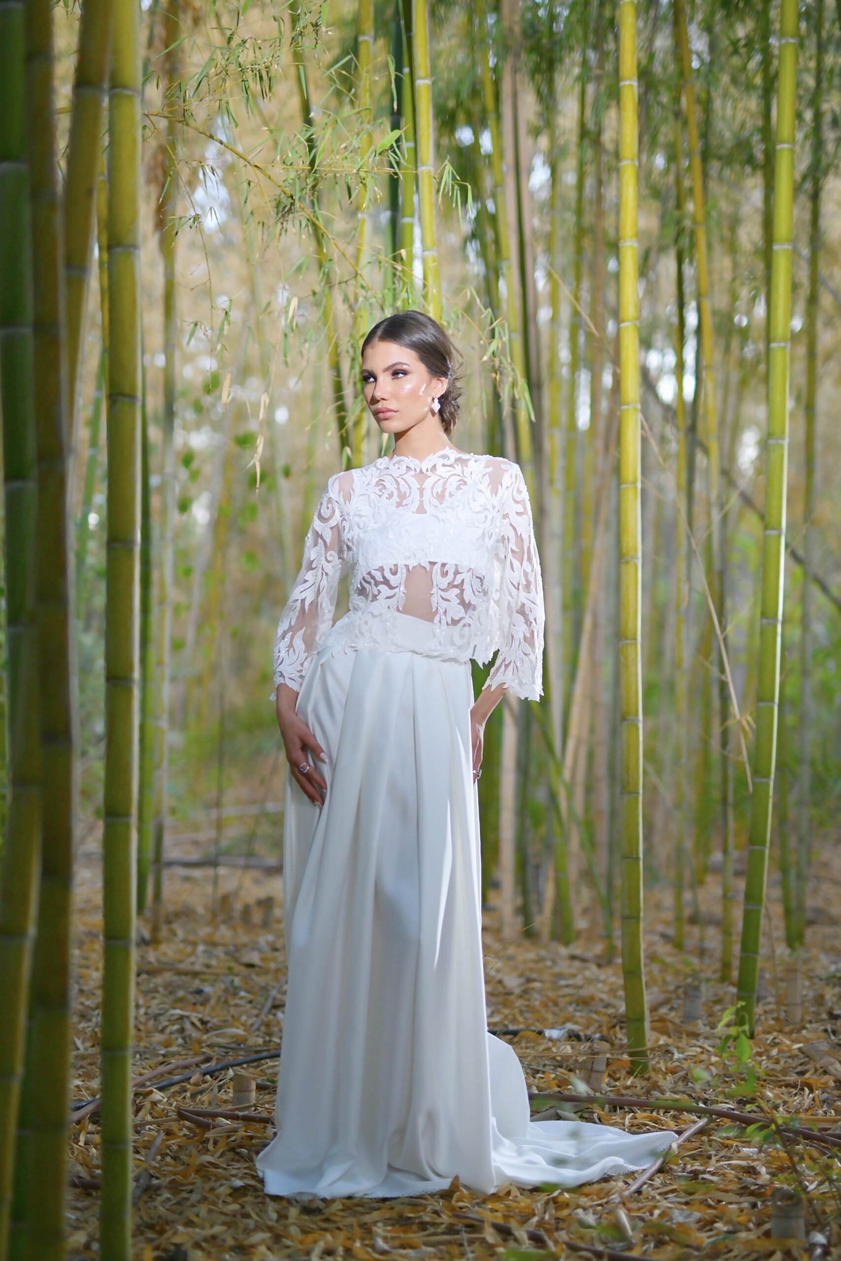 Jasmine, un souffle d’ivoire qui glisse sur la peau. Ce top arabesque laisse filtrer une lumière douce sur chaque motif. Une création pensée pour sublimer la mariée lors d’un mariage civil, d’une cérémonie intime, d’une soirée élégante ou de tout instant où l’élégance se veut inoubliable.