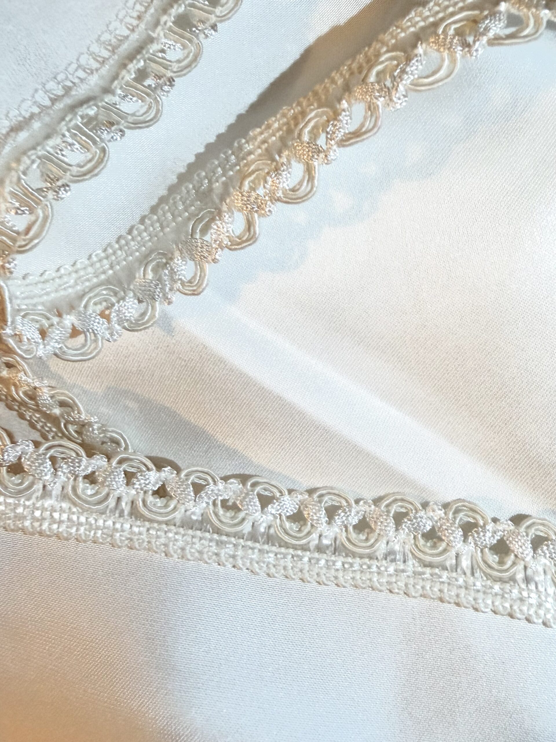 • Ourlet brodé à la main, réalisé point par point selon le savoir-faire artisanal.