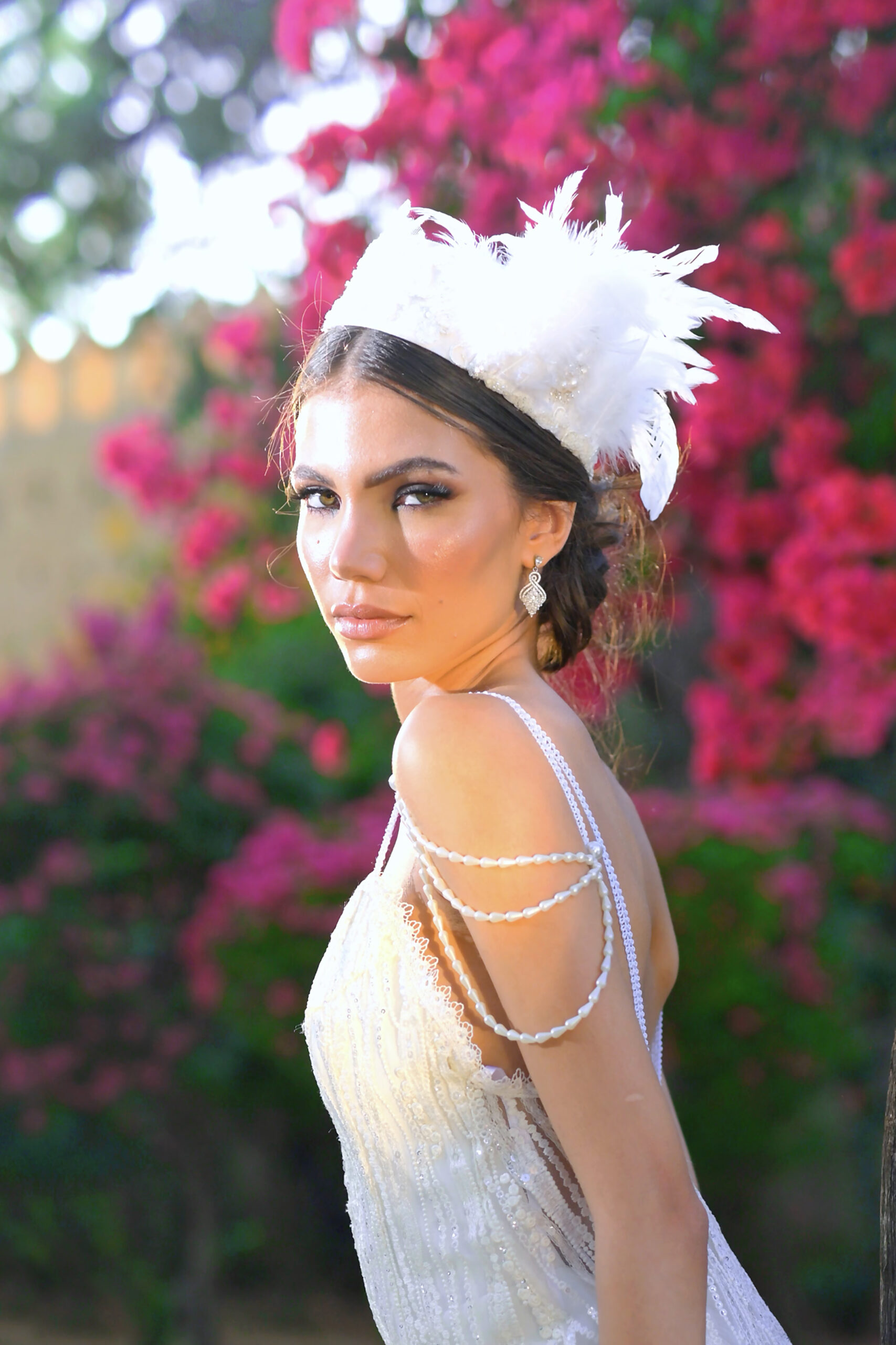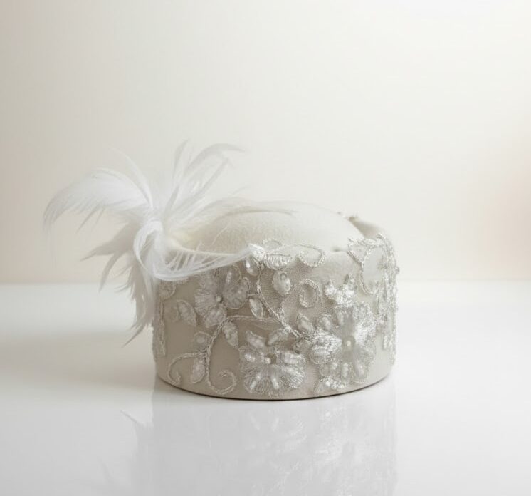 Le Bibi Royal est une pièce d’héritage, un chef-d’œuvre de délicatesse. Dentelle perlée, plumes vaporeuses, broche sertie de perles. Portez-le pour une allure digne d’une reine, avec la légèreté d’une princesse.