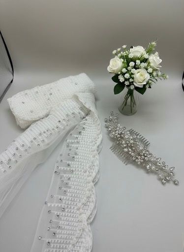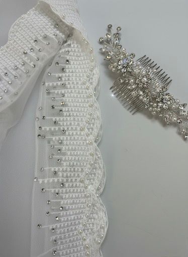 Laissez-vous éblouir par l’éclat du voile Bellina. Son tombé magistral et la richesse de ses motifs perlés confèrent à la mariée une aura de grâce et de distinction suprêmes.