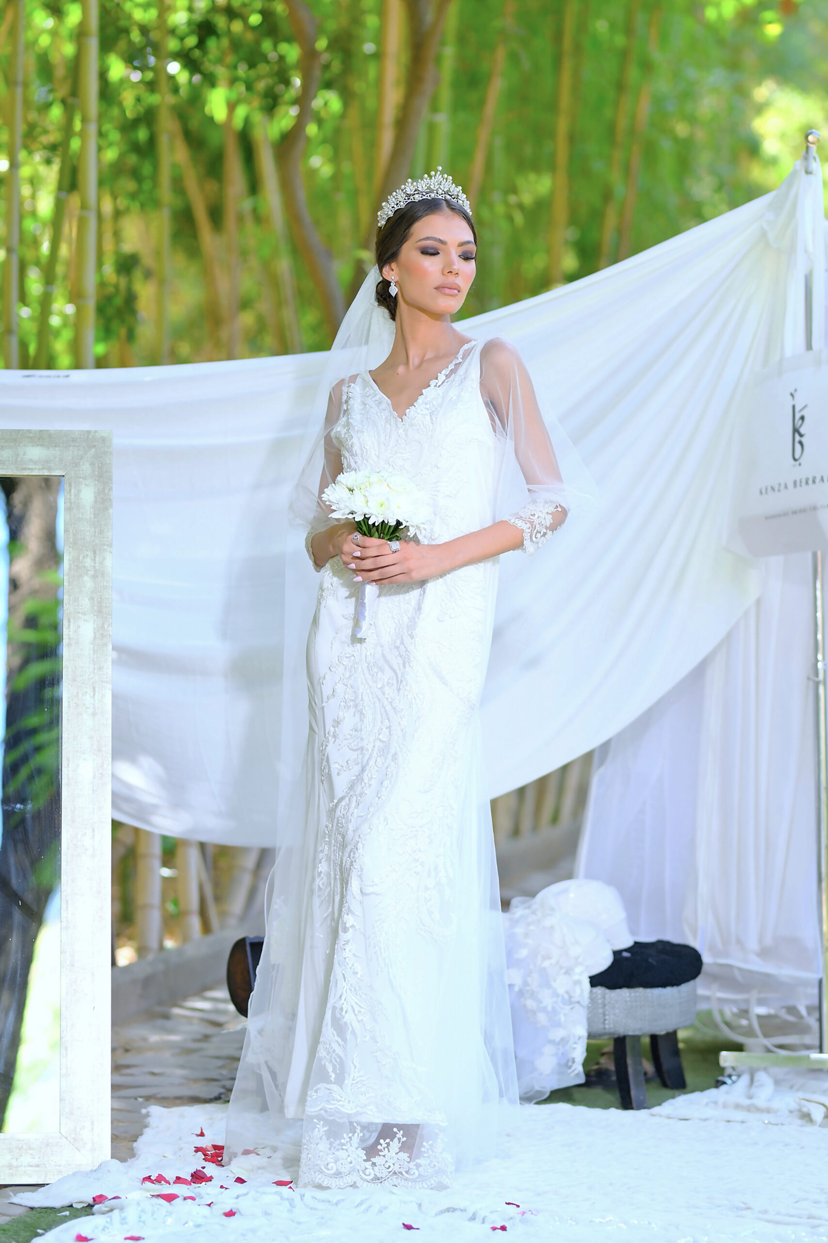 Il s’accorde avec élégance à la robe ‘Aurora’ de la collection ‘Signature’, dont le galant orne les manches et souligne la ligne de la robe, comme illustré sur la photo.